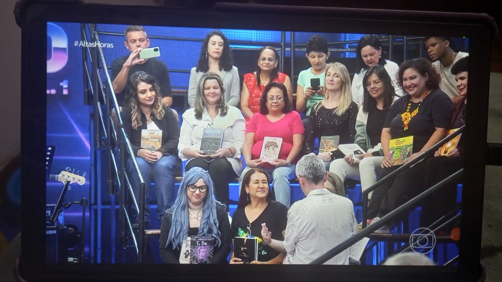 Para muitas pessoas eu posso ser um nada, um zero a esquerda. Porque o conceito de sucesso delas é diferente do meu. Agora, eu acredito que estou no caminho certo, com as feiras presenciais — principalmente as pequenas, fora do eixo Bienal Rio e SP — e com os projetos sociais nas escolas. Até a ida ao Altas Horas (a foto que ilustra esse post), mesmo que na plateia, vejo como um conceito de sucesso.