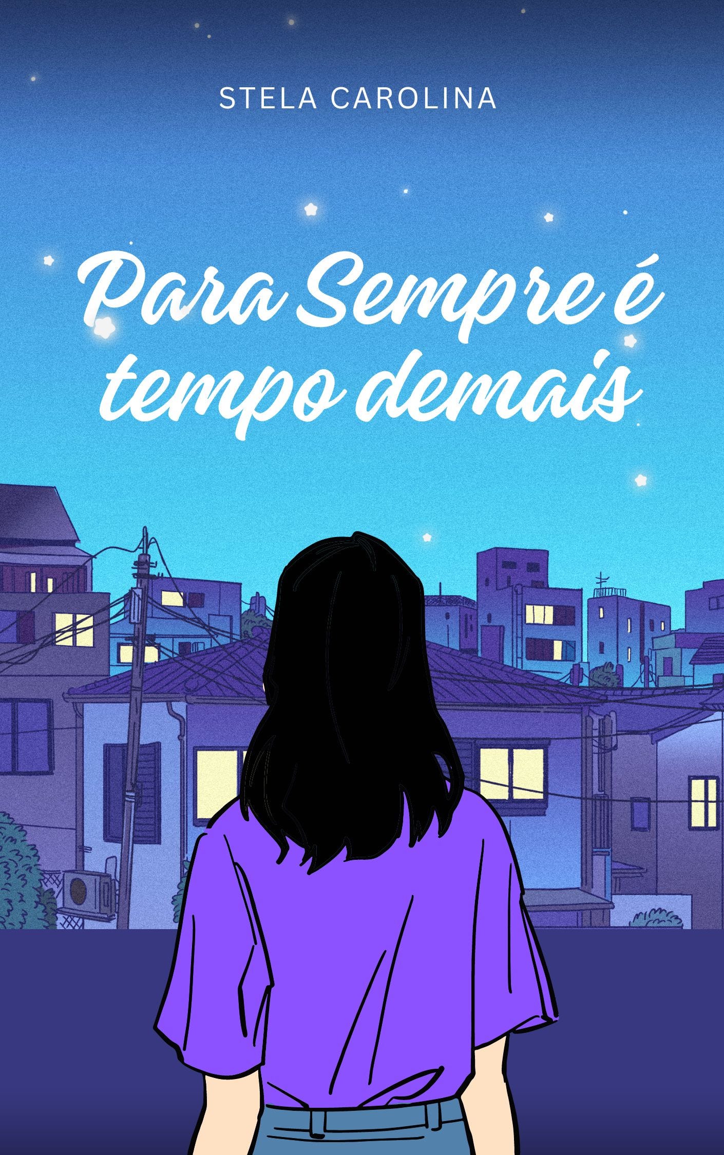 São dois livros que, no Wattpad, estou publicando como se fosse um livro único com parte 1 e parte 2. Inclusive, por lá já comecei a postar a parte 2, que seria o “Para Sempre” original. É um drama sobre baixa autoestima, falta de amor-próprio, amores não correspondidos, primeiro emprego e vida na faculdade. Além, é claro, de falar sobre depressão e suicídio, então, sim, pode conter gatilhos.